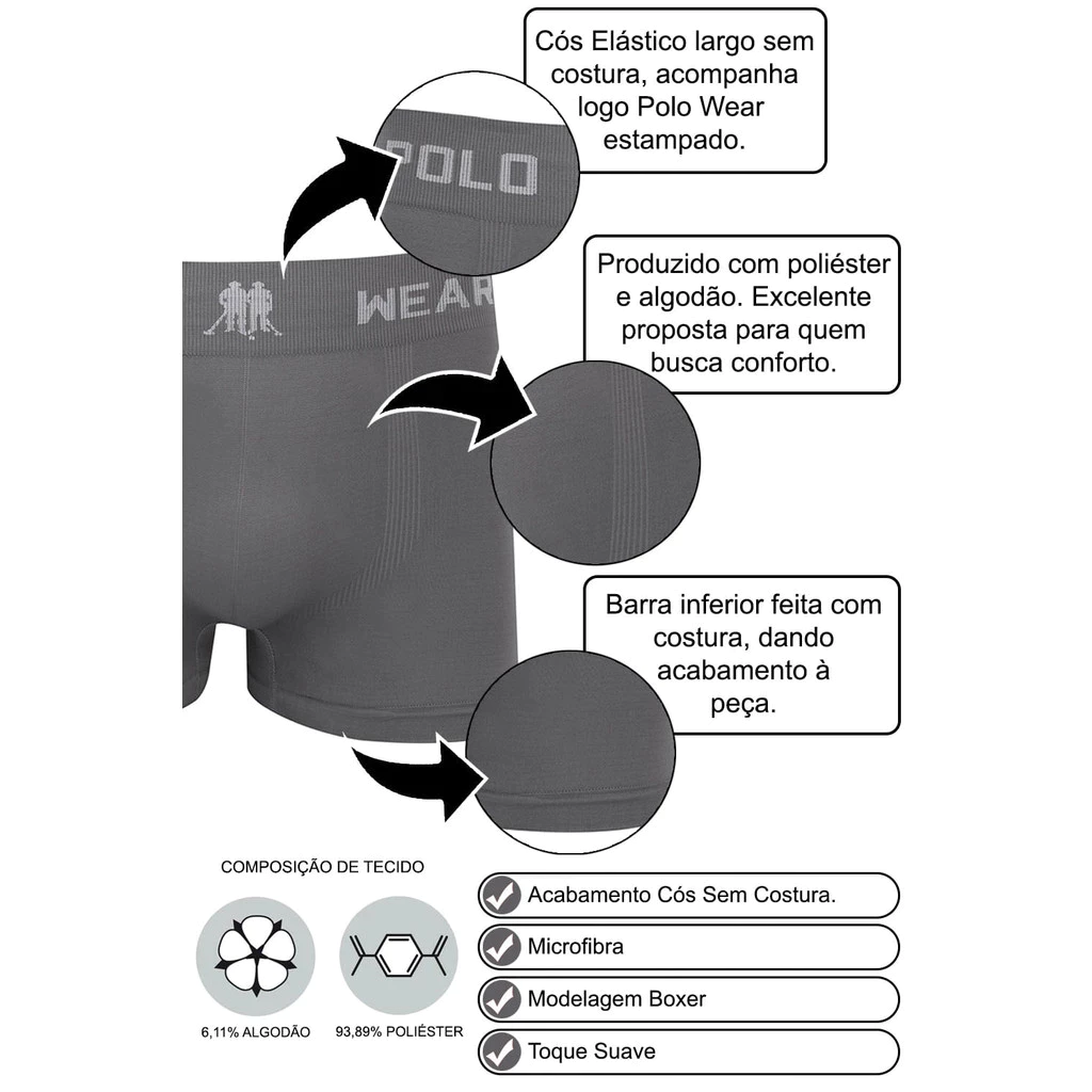 12 Cuecas Boxer Polo Wear – Microfibra Sem Costura